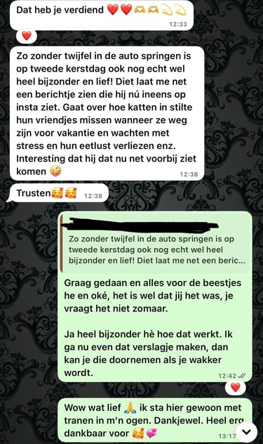 Wat me vooral raakte, is dat er inzichten en antwoorden naar voren kwamen die ik niet had verwacht. Mijn paard bleek dingen heel helder te hebben aangevoeld. Het bevestigde voor mij dat dieren echt een stem hebben en dat het zoveel brengt wanneer je ernaar leert luisteren.